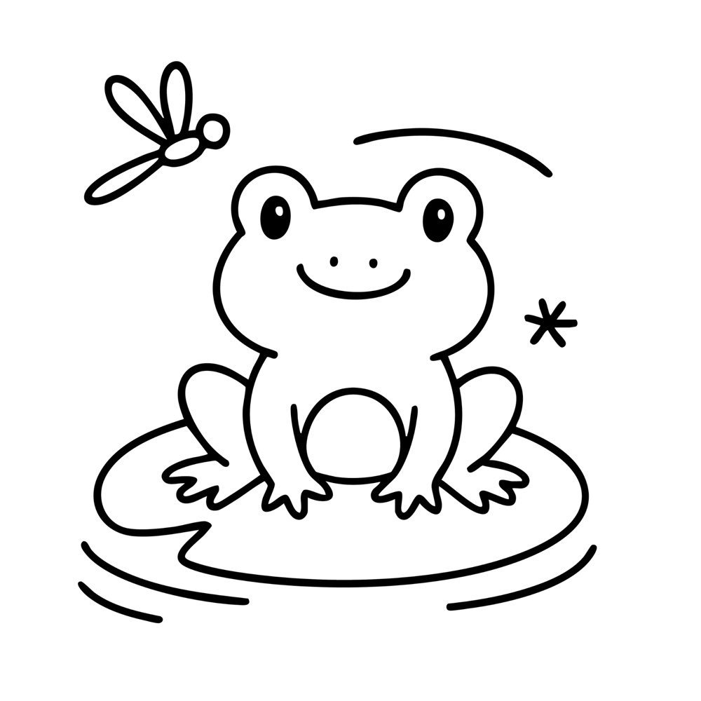 - A friendly frog relaxing on a lily pad while a dragonfly buzzes nearby